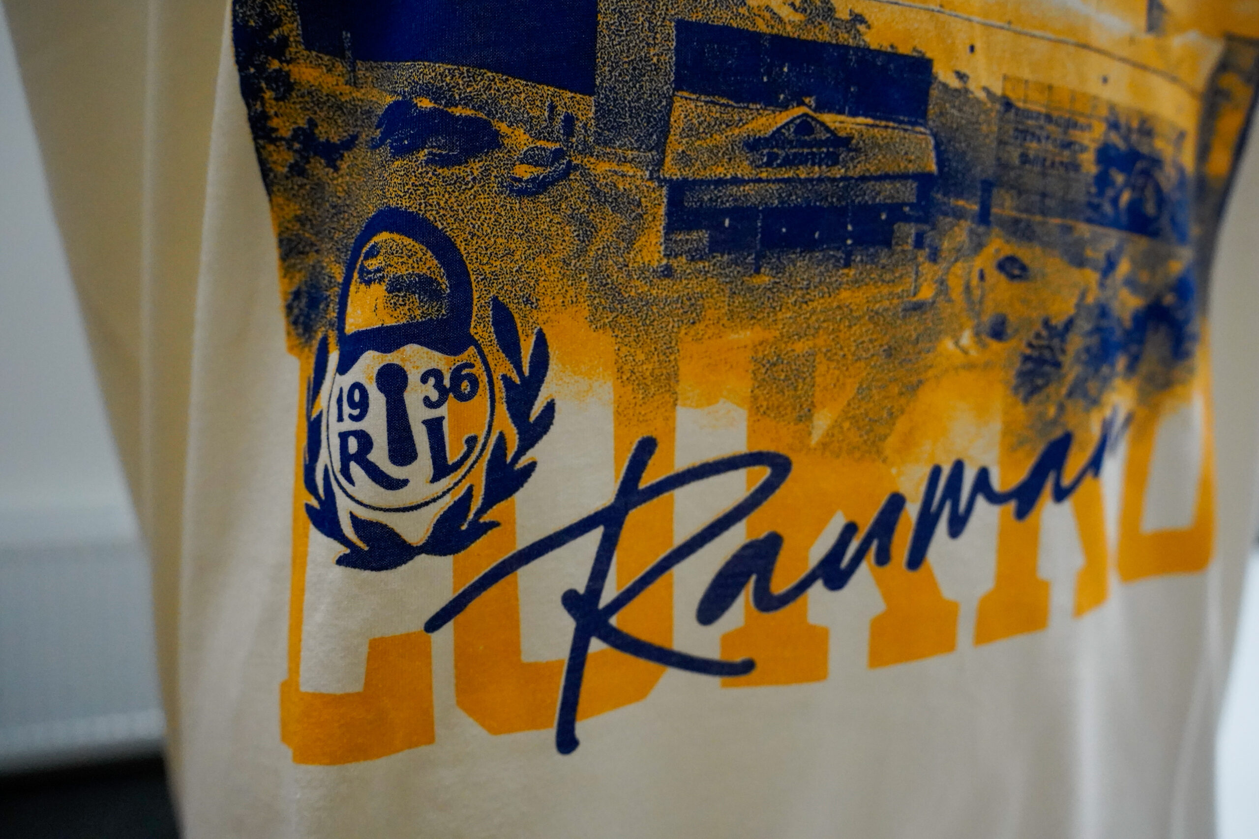 Paidan etuosassa iso painatus, jossa kuva kotiareenastamme, Kivikylän areenasta.